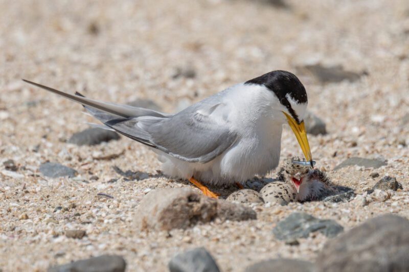 この日は30℃超えの非常に暑い日で撮影してても汗がでるほどの日差しでした。現地に着くとさっそく元気に生まれた雛をみることができ、抱卵中の親も多数居ました。雛の動きは意外と早くなるべく撮影枚数を抑えようと思っても連射してしまい写真整理が大変です。