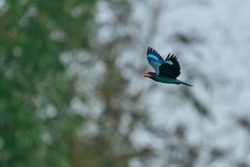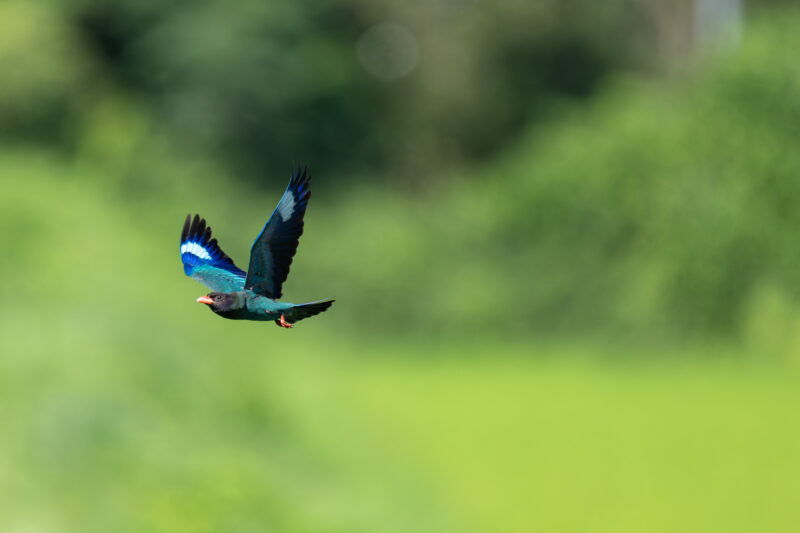 はじめてみるブッポウソウに魅了されました。鮮やかなブルーが光の反射で輝いています。