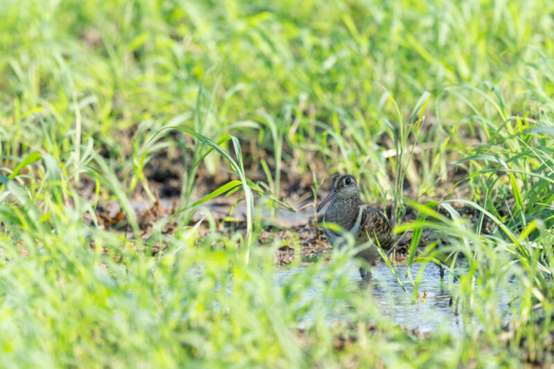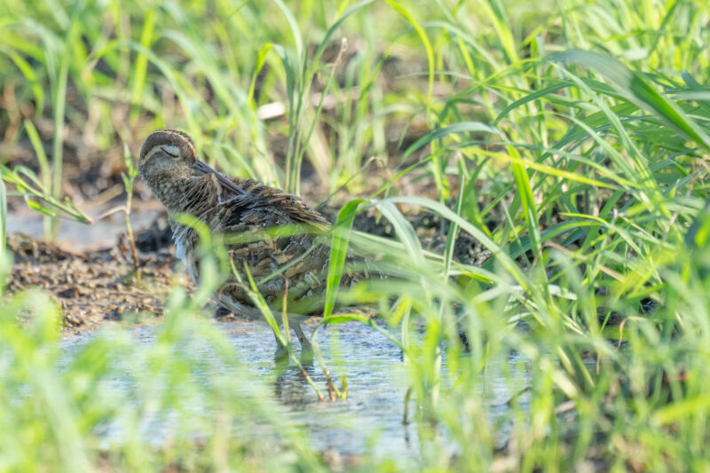8月10日高槻市にタマシギがいるとの連絡をいただき早速撮影に行ってきました。休耕田には草が生い茂っていてなかなか発見することができません。この日も猛暑で待機するのもかなり体力を使います。